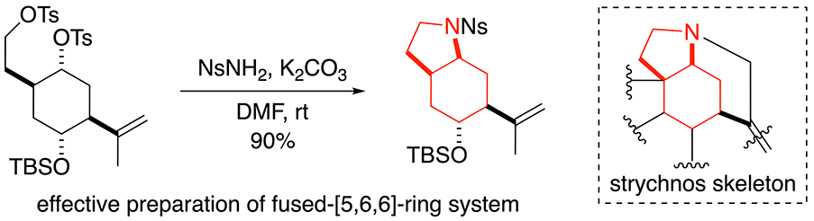 Toward the Synthesis of Strychnos Alkaloids: Effective Construction of Fused Cyclohexane and Pyrrolidine Portion of the Strychnos Skeleton via Domino Intermolecular and Intramolecular SN2 Cyclization