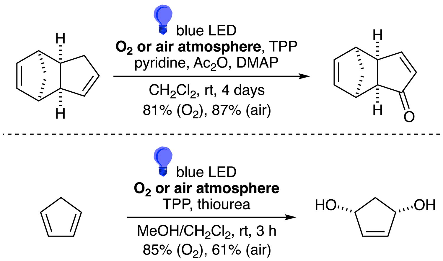 Efficient Oxidation with Singlet Oxygen from 5,10,15,20-Tetraphenylporphyrin under Blue LED Irradiation and Air Atmosphere: Simplified Preparation of Key Building Blocks for Natural Product Synthesis