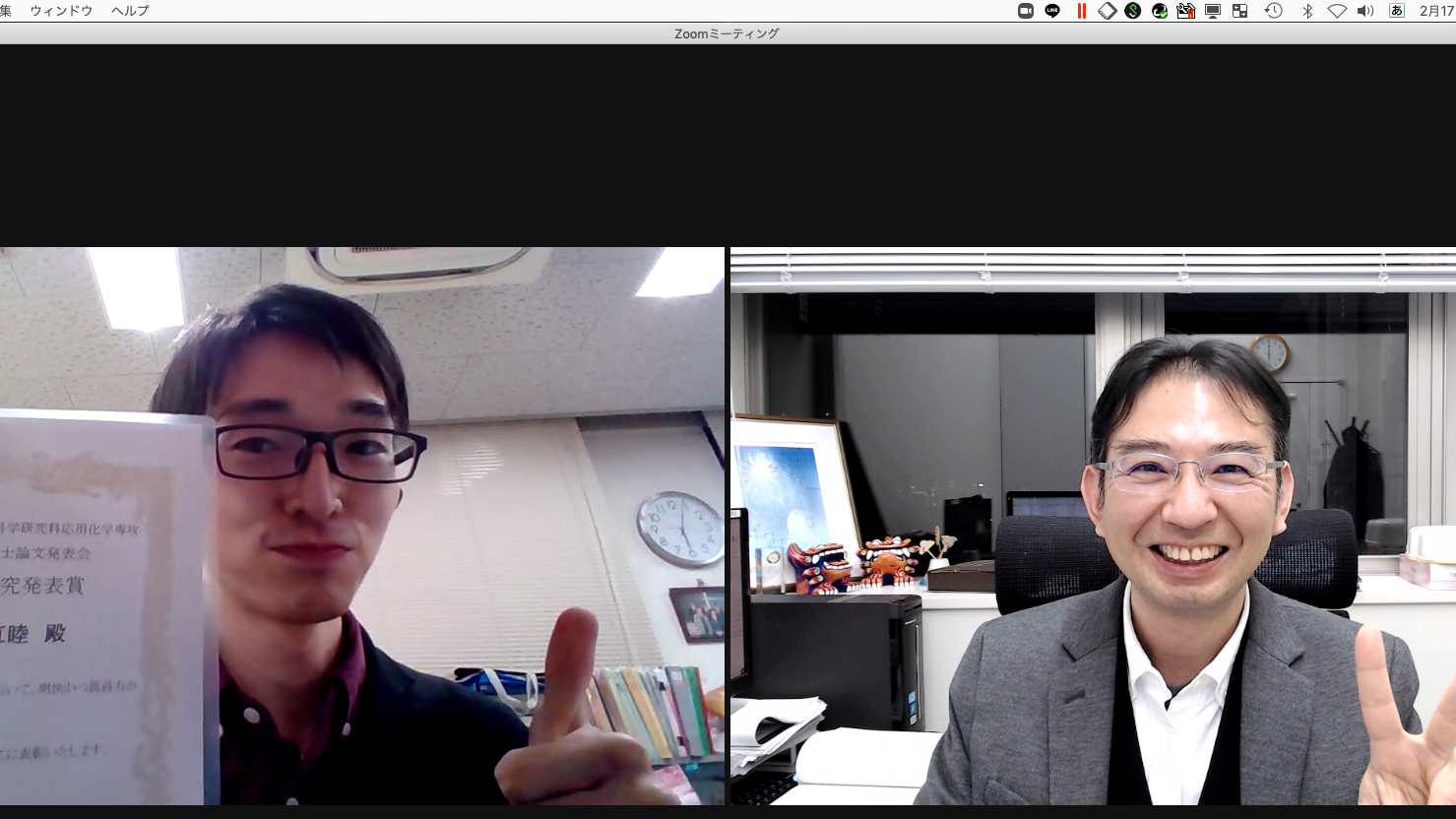 1年間毎朝Skypeでディスカッションしながらしっかり研究を進めてくれました.最優秀発表賞は坂倉研初ですね.おめでとうございます.
