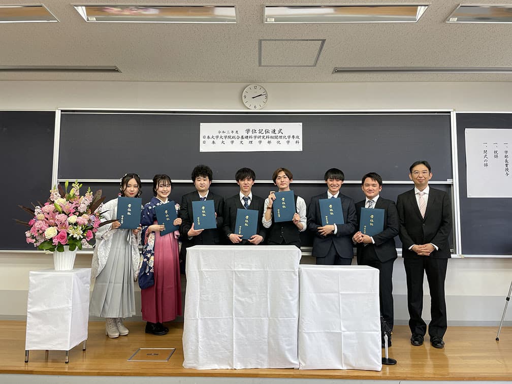 早川研第1期生7名が卒業式を迎えました.ご卒業おめでとうございます!!配属されてから1年間でみなさん飛躍的に成長されたと思います.卒業式にて,蓮見聖人君が優等賞として表彰されました.4年間,本当によく頑張りました.