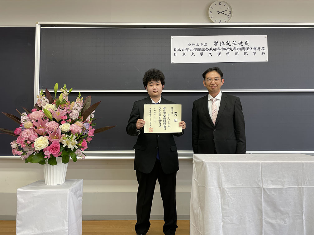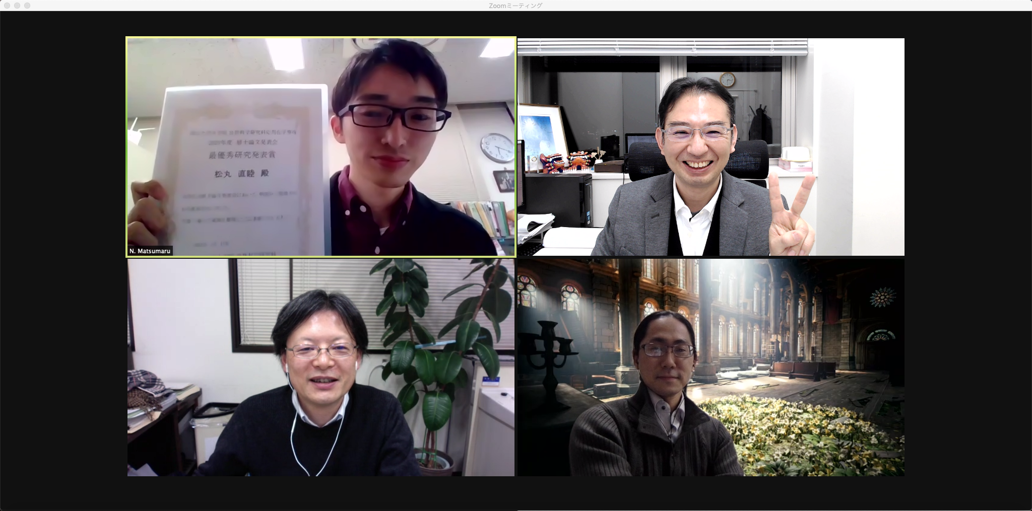 共同研究者である岡山大学大学院自然科学研究科(坂倉研)の松丸直睦君が修士論文発表会において最優秀研究発表賞を受賞しました!