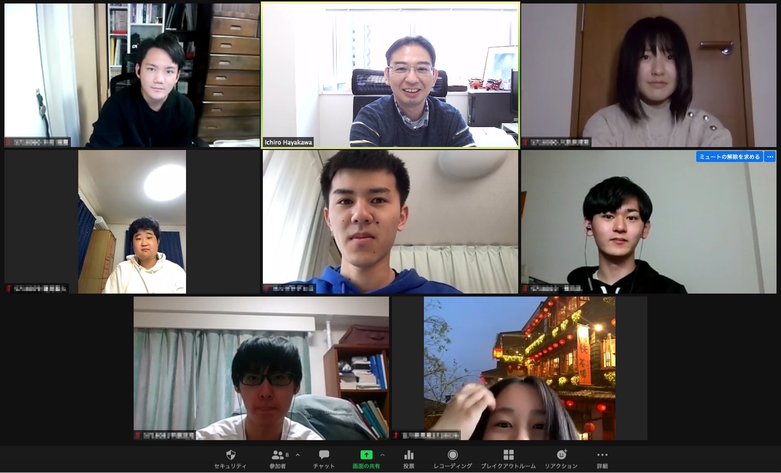 Zoomによる記念写真(坂倉先生,溝口先生,ディスカッションありがとうございました!).