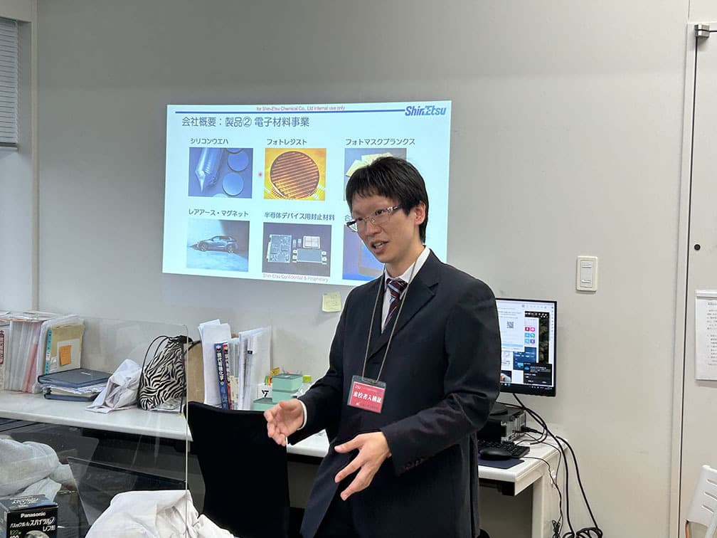 早川が筑波大助教時代の学生だった好井孝典さん(有機合成薬品工業株式会社)と加藤陽子さんが研究室を来訪してくださり,会社説明会を行ってくださいました.