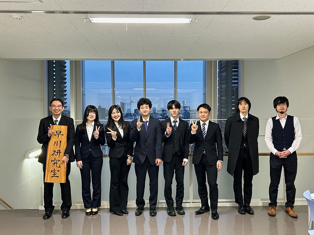 早川研第3期生(学部生)6名と第1期生(博士前期課程)6名が卒業式を迎えました.特に大学院に進学してくれた1期生が社会に巣立っていくのは特別な思いです.卒業されるみなさんの社会での活躍を期待しています.進学するメンバーは来年度も研究室を盛り上げていってください.卒業おめでとうございます.