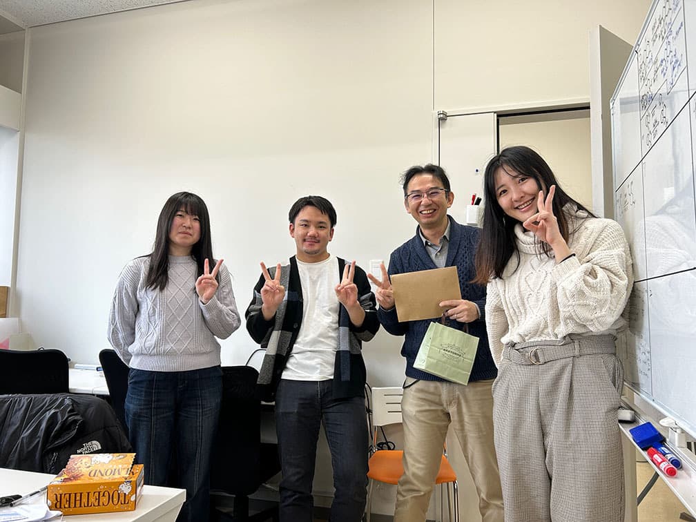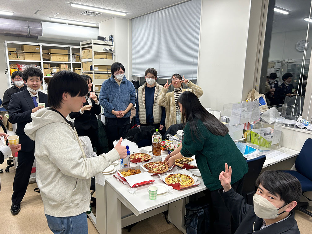 M1が中心になって,サプライズパーティーを用意してくれていました(早川は会議で参加できず,残念…).いい感じの研究室の雰囲気になってきて嬉しく思います.来年度は是非参加したいと思っています.