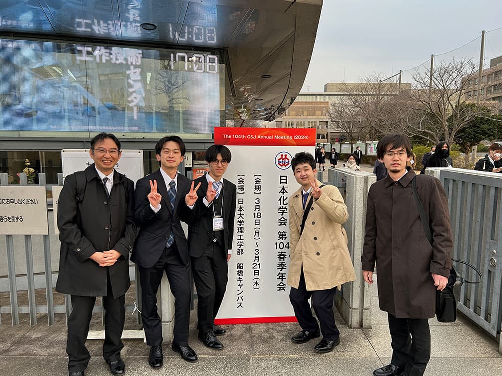 日本化学会第104回春季年会(日本大学理工学部 船橋キャンパス)で5件の口頭発表を行いました.蓮見君と堤先生以外はデビュー戦でしたが,みんなしっかり発表して,質問にも的確?に回答していたと思います.知り合いの先生からも,「早川研はみんなしっかりした発表だった」とお褒めの言葉を頂いてきました.学会期間中の夜は卒業生と飲みに行ったり,研究分野の友人と飲みに行ったり,筑波大でお世話になった木越先生を囲む飲み会等で旧交を温めました.飲んでばっかりですね(笑).