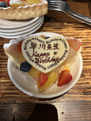 また,夜は前期の打ち上げを行いました.早川の誕生日も祝っていただきました.幹事さんどうもありがとうございました.夏休みはしっかり充電して,また頑張っていきましょう.