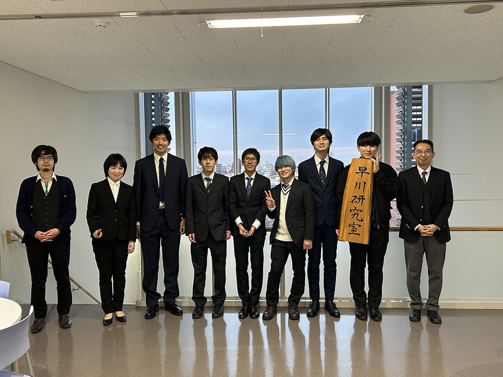 早川研第4期生(学部生)7名と第2期生(博士前期課程)5名の学位授与式が開催されました.卒業生のみなさん,おめでとうございます.社会での活躍を祈念しています.進学する人は,引き続き頑張りましょう.