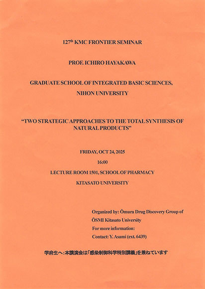 北里大学大村智記念研究所 浅見行弘先生にお招き頂き,伝統あるKitasato Microbal Chemistry Frontier(KMCF)セミナーで講演をさせていただきました.